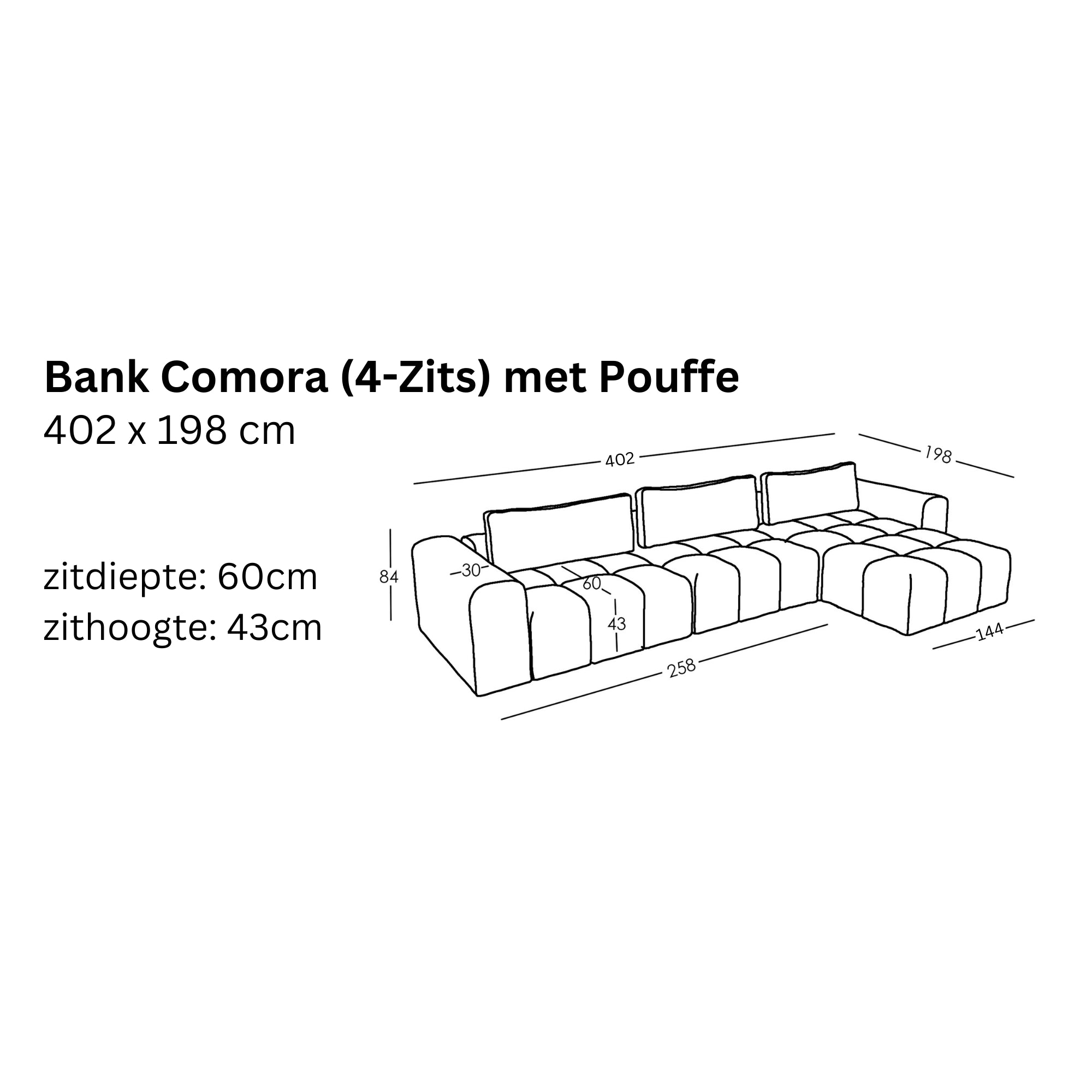 Moduleaire Bank Comora (4-Zits) met Pouffe