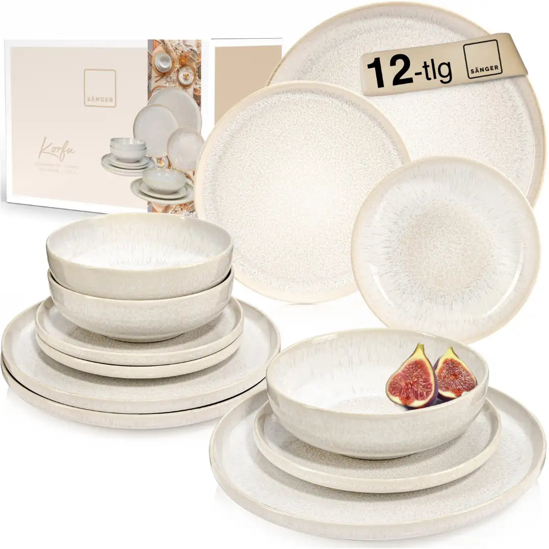 Steingut Geschirrset Korfu, Tafelservice 12 teilig für 4 Personen